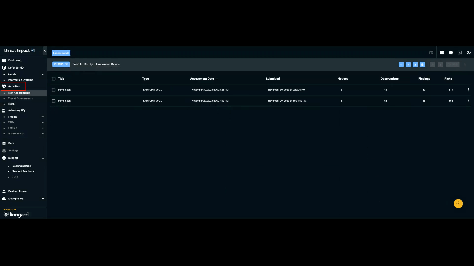 - Submitted (the date the assessment was submitted to ThreatImpact IQ)
