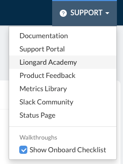 From within the Liongard platform, click the SUPPORT dropdown and select Liongard Academy.