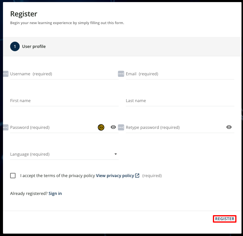 This will take you to the academy's sign-in page. Click 'Register' to create a new account.