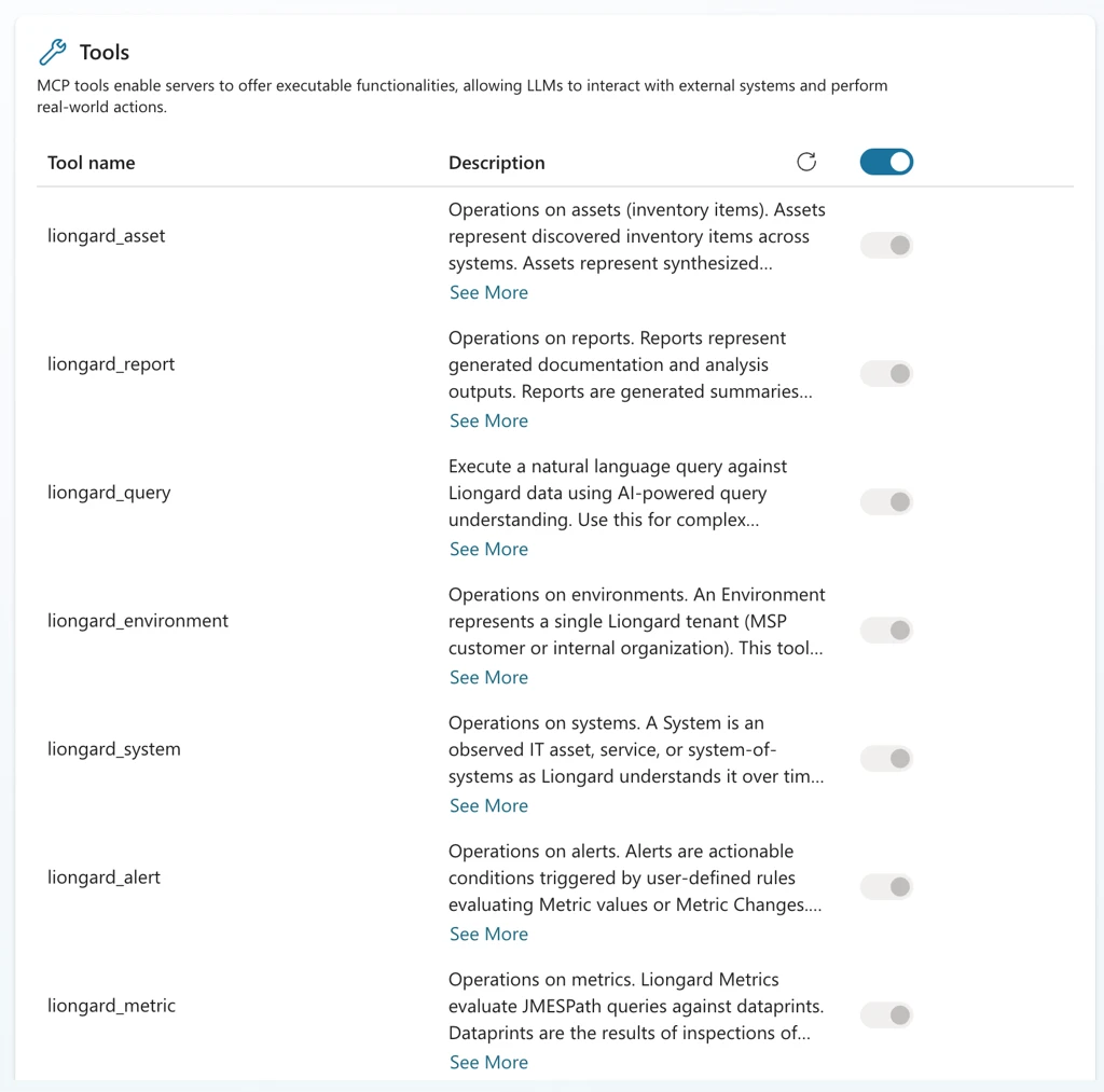 - Key Use Case: Integrate MCP data with Liongard for asset inventory, configuration monitoring, and security insights.