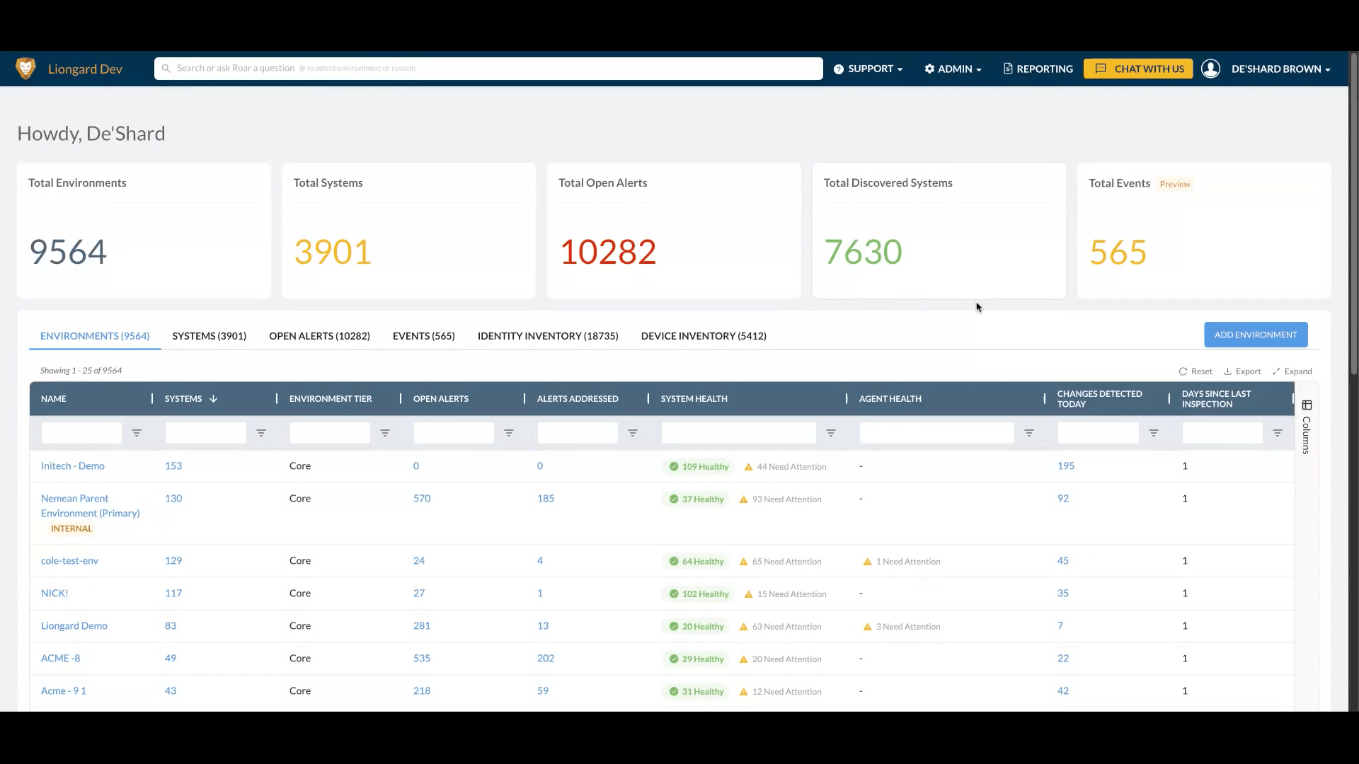 - What it does: Lists and looks up your customer accounts (environments) in Liongard. Think of environments as folders, one per client or organization you manage.