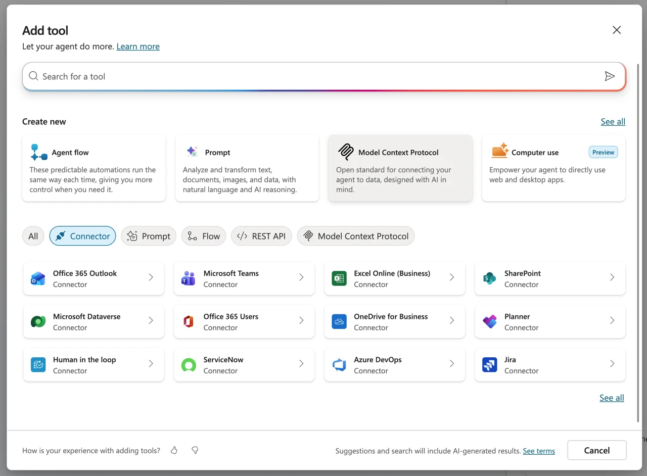 - Tenant-wide Access: All MCP data accessed via these credentials is available tenant-wide and not restricted by user role.