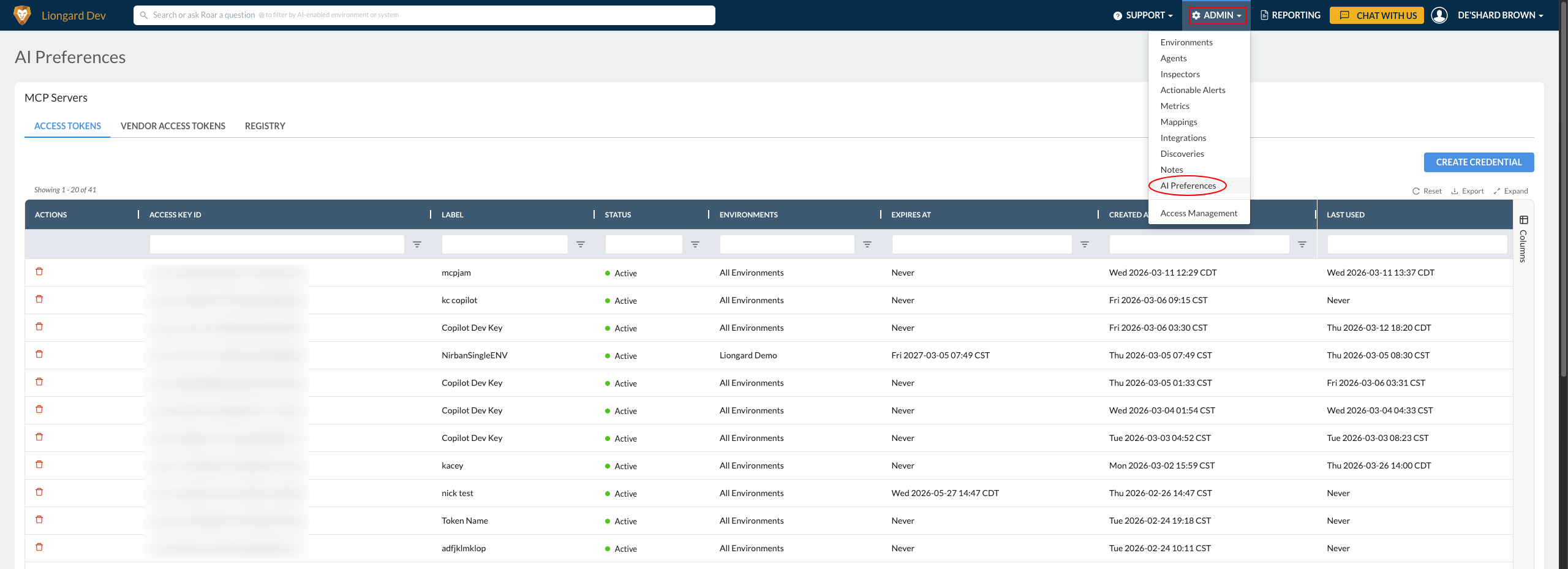 - Provisioned access tokens generated through the Admin > AI Preferences panel