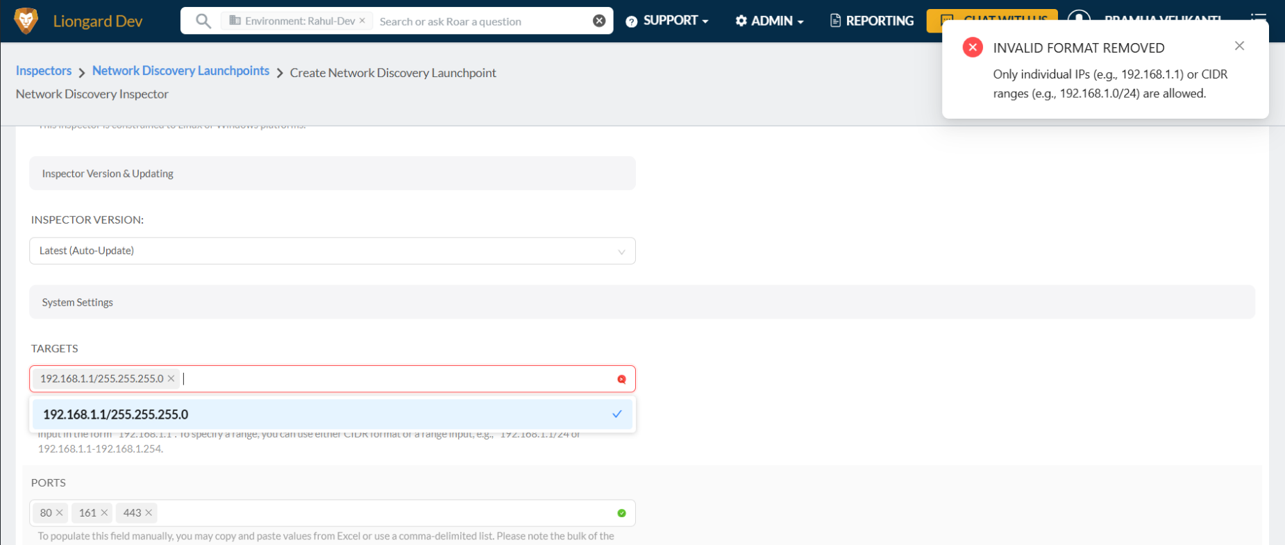 Network Discovery has been updated to enforce the use of CIDR notation for defining scan targets, improving consistency, accuracy, and alignment with modern networking standards.