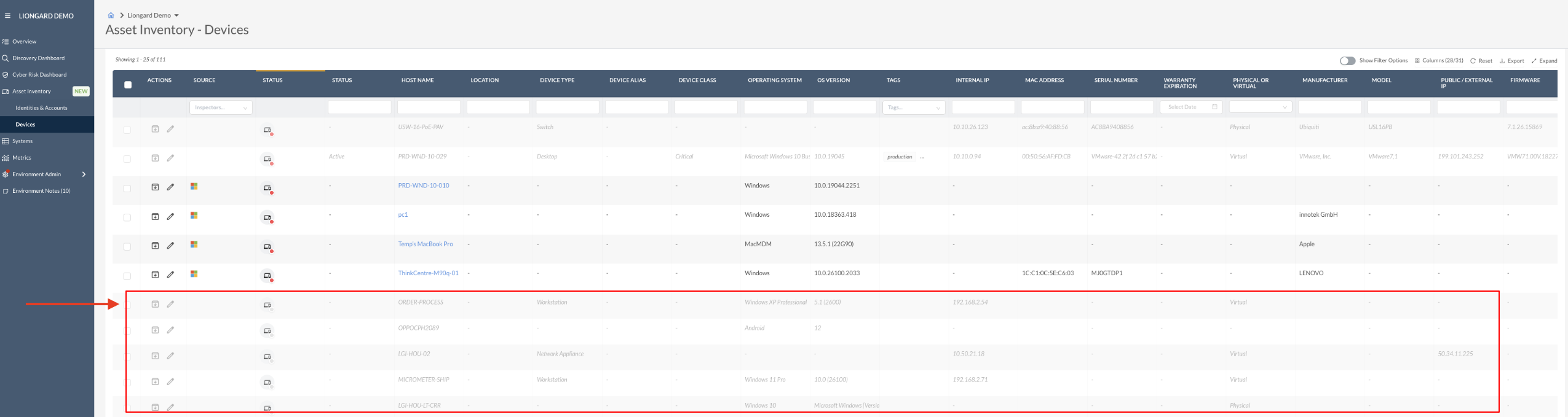 Stale assets are visually indicated within Asset Inventory, (grayed out) making it easier for you to identify outdated entries and take appropriate action to keep your environment clean and accurate.