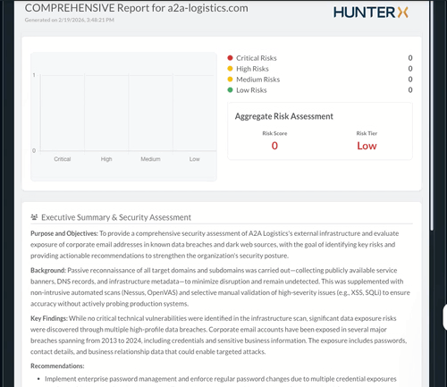 A Comprehensive Scan gives you the most complete security assessment, including technical and dark web analysis.