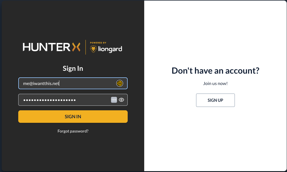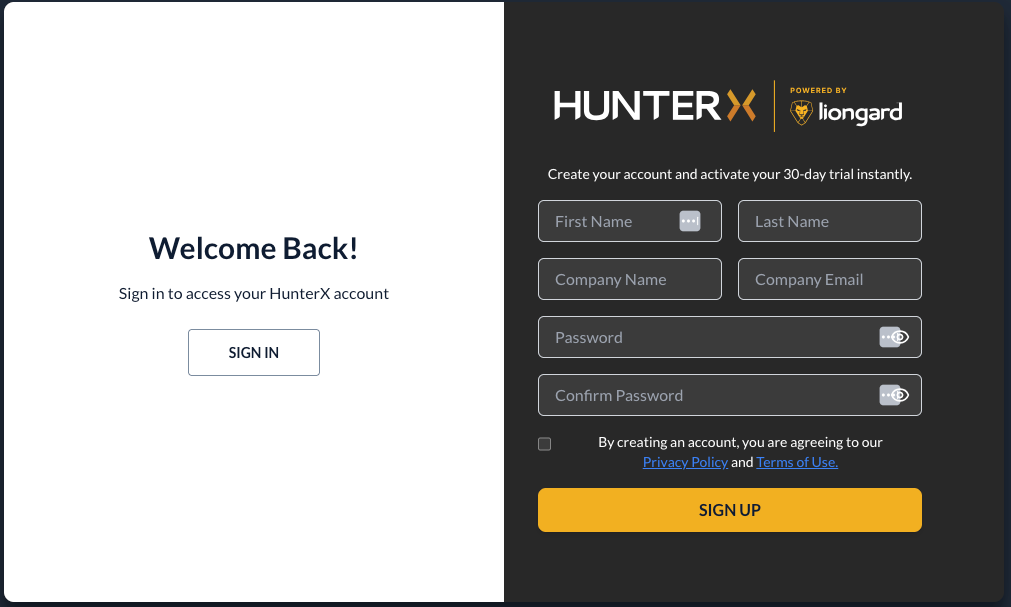 - I am a non-partner and wish to create a new HunterX instance: follow the sign-up procedure below, for New HunterX User (Non-Liongard partner).