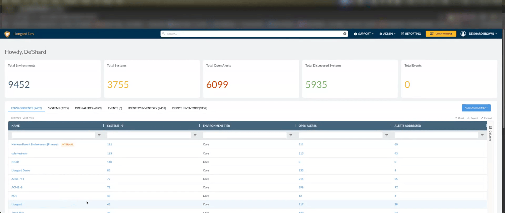 The Visual Insights feature allows you to create and customize dashboards with Liongard data. The feature includes six (6) pre-built dashboards out of the box, along with the ability for partners to create and customize unlimited additional dashboards. You can find this feature by clicking Reports located in Liongard's toolbar.