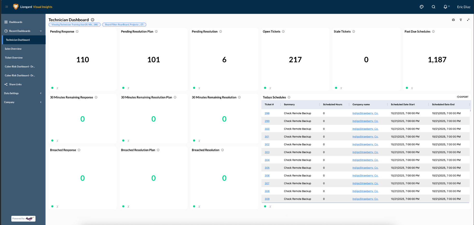 Visual Insights Pro is a premium add-on that provides automated, reliable, and highly customizable dashboards powered by the ConnectWise connector. You can create, personalize, and export dashboards using your own branding, ensuring a consistent and trusted experience for both internal use and client communications. Real-time, unified datasets and intelligent data callbacks enhance data integrity and remove reporting complexity, allowing operational, financial, and executive teams to make faster, more informed decisions.