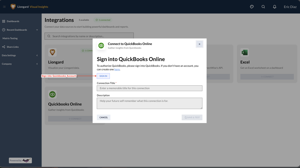 Visual Insights' QuickBooks Integration