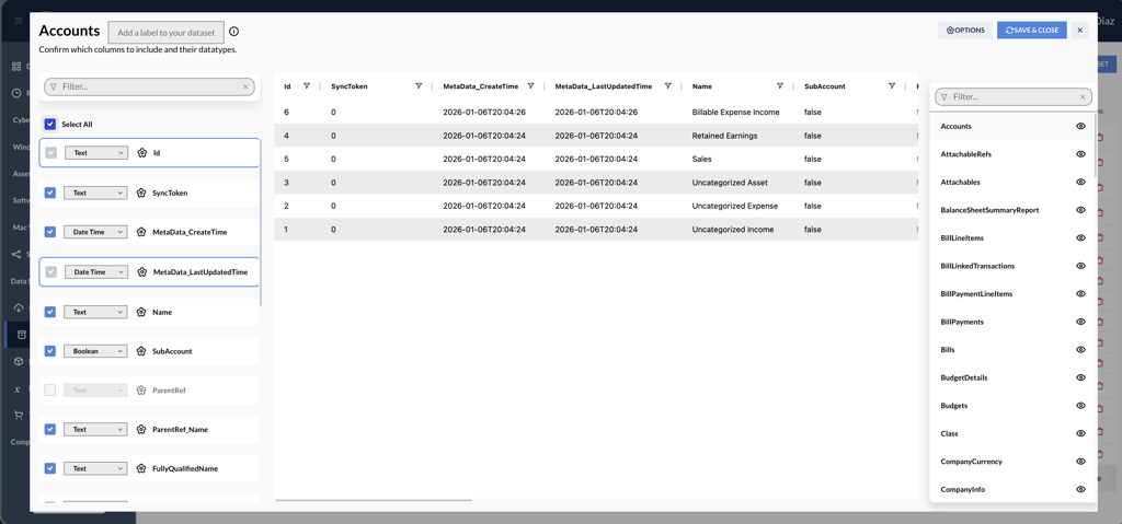 4. Sync QuickBooks Datasets