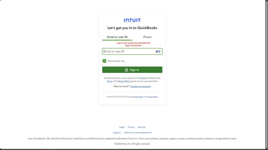 You will be redirected to the QuickBooks Online login page.